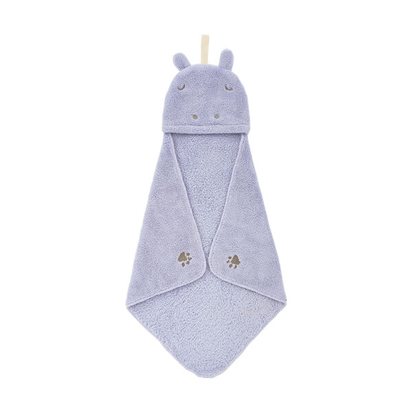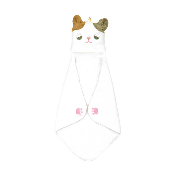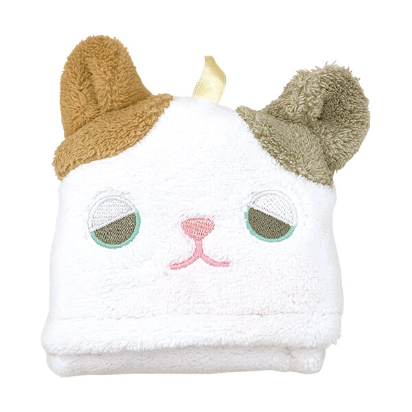 タオルの隅にあしらわれた“にくきゅう”が前足のよう。