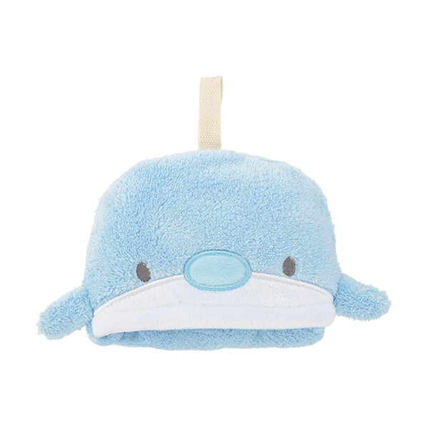 タオルをポケットに収納すると、「イルカ」を正面から見ているようなデザインに。