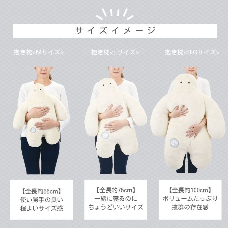 ソファでくつろぐ時や、デスクワークなどの作業中にぴったりな小ぶりの「Mサイズ」、程よいサイズ感で添い寝にもぴったりな「Lサイズ」、ボリュームたっぷりの「BIGサイズ」がラインナップされています☆