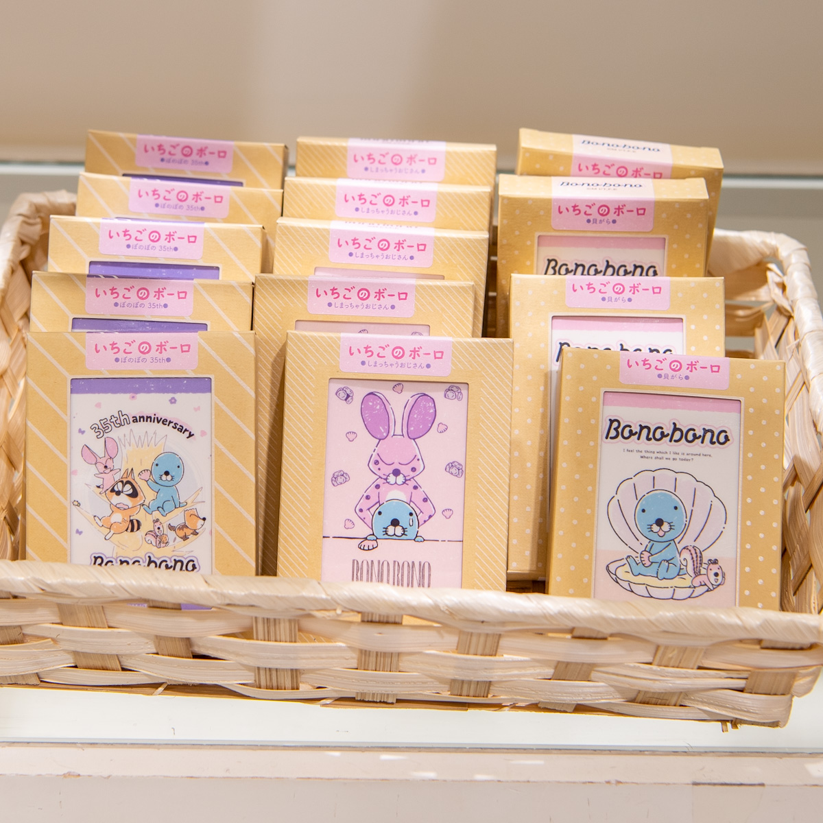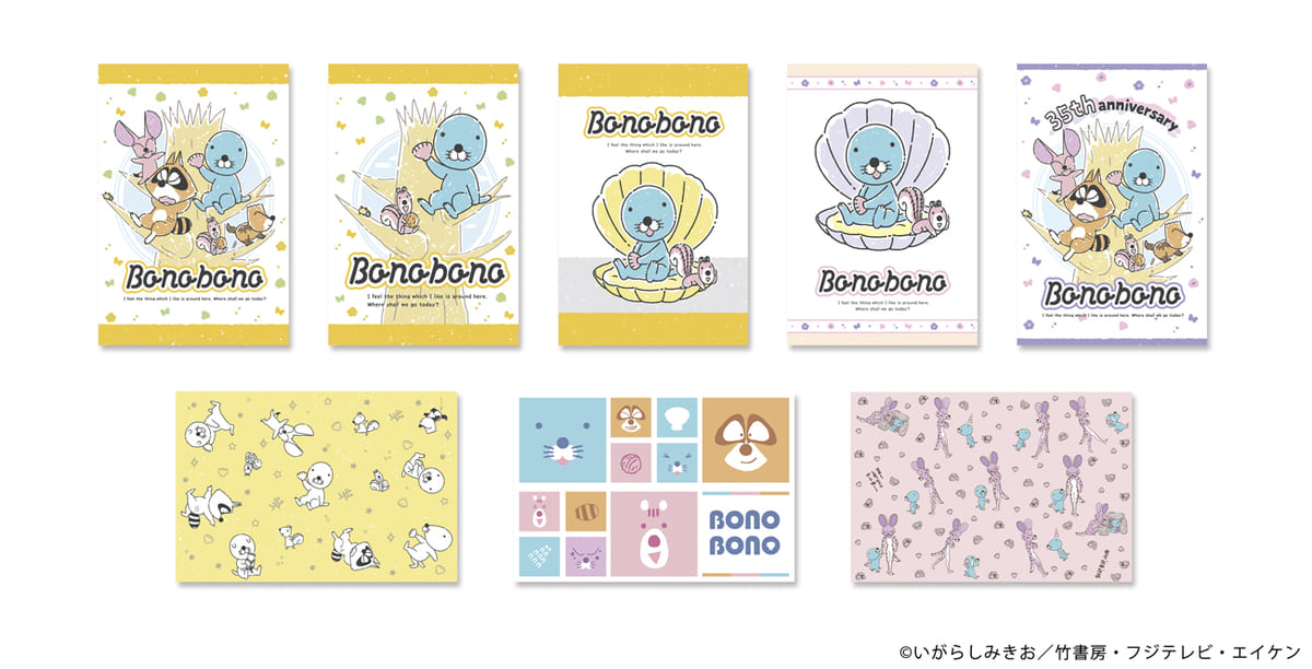 「ぼのぼの35th」「しまっちゃうおじさん」「貝がら」などの絵柄が登場しています。