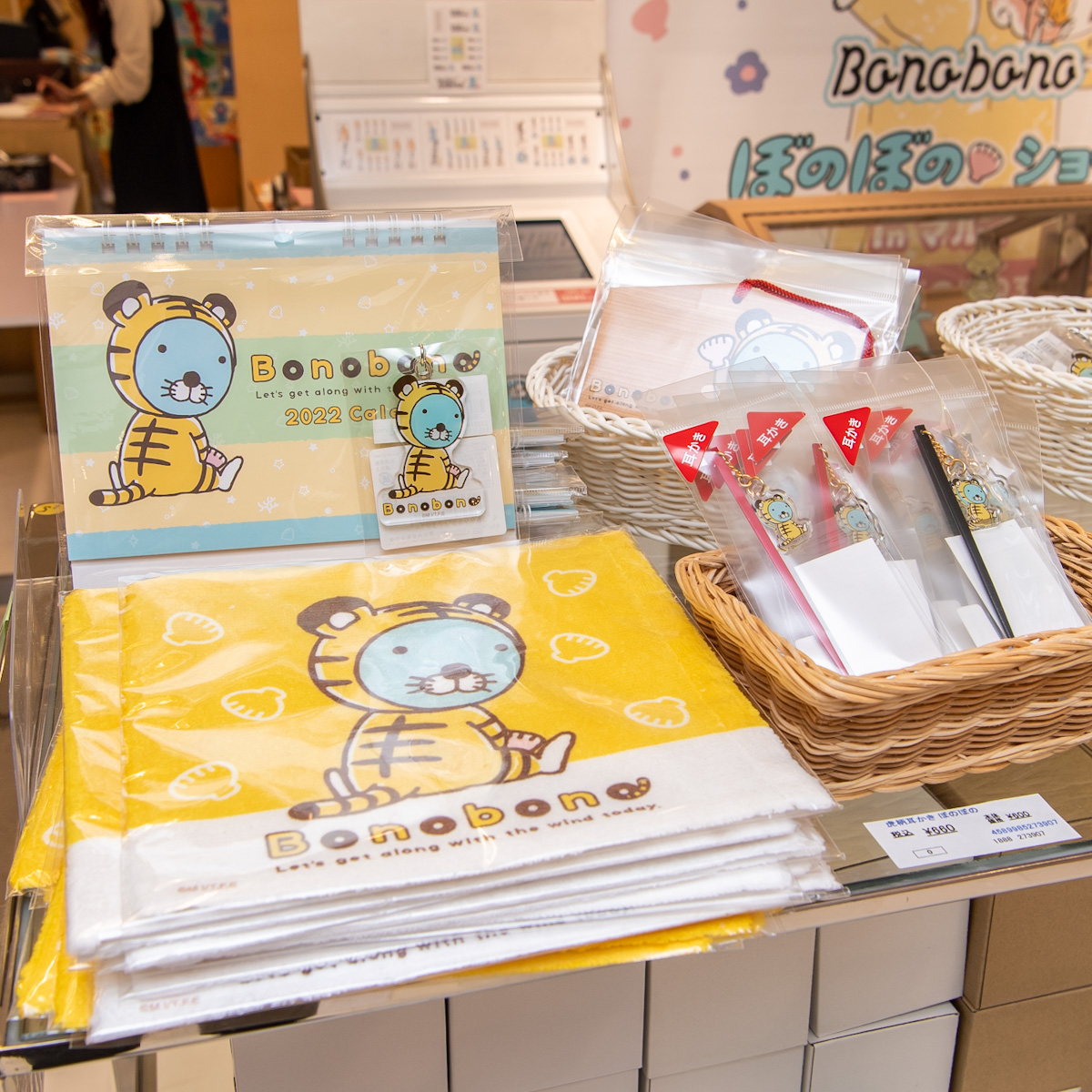 2022年の干支・寅のきぐるみを着た「ぼのぼの」のグッズも。