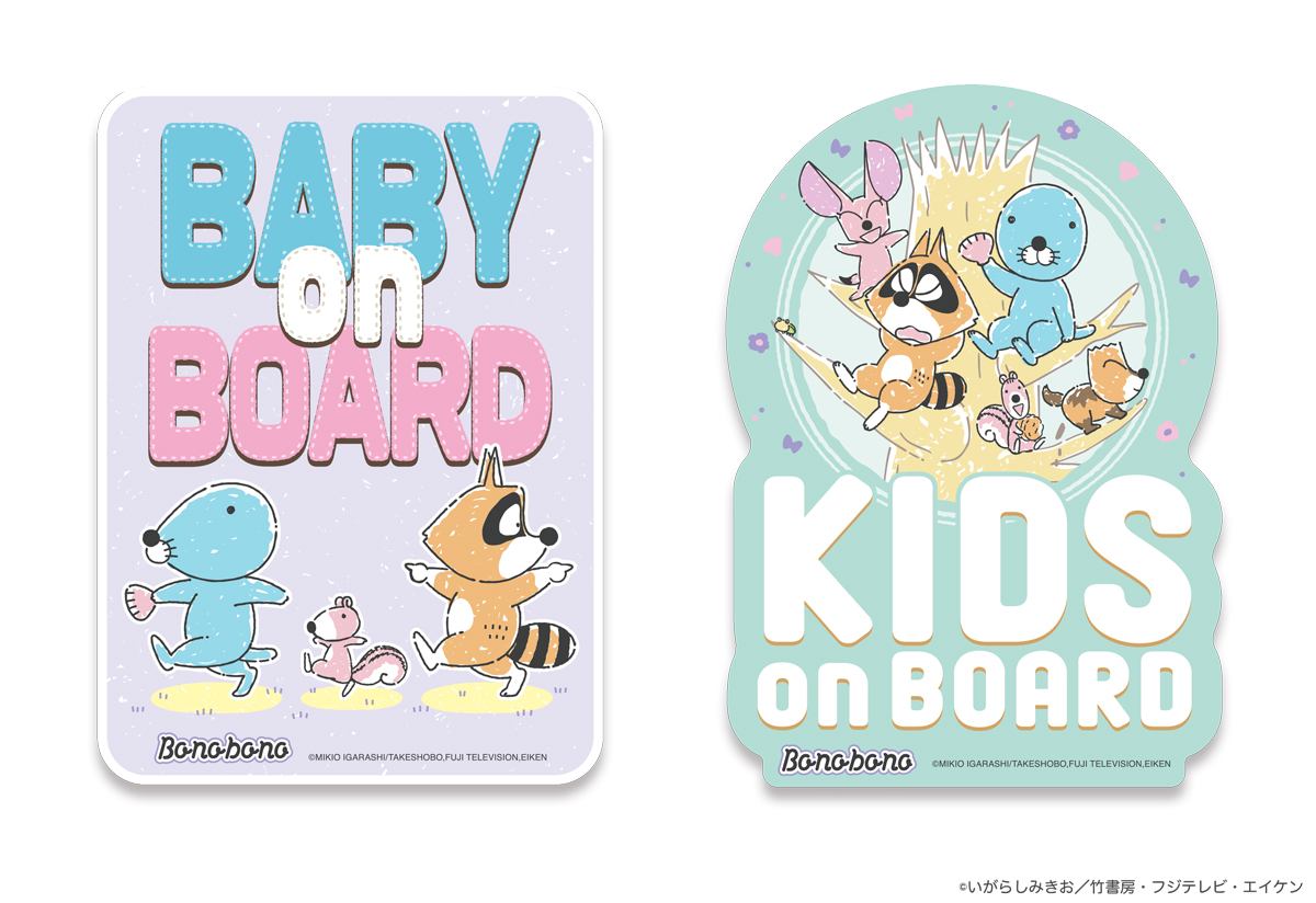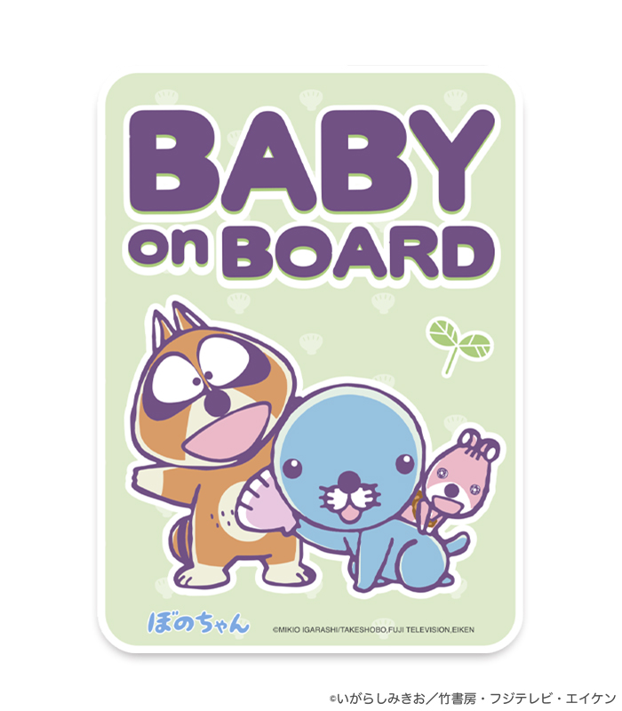 お子さんや赤ちゃんが乗車していることを「ぼのぼの」たちが可愛くお知らせしてくれる車用ステッカーです。