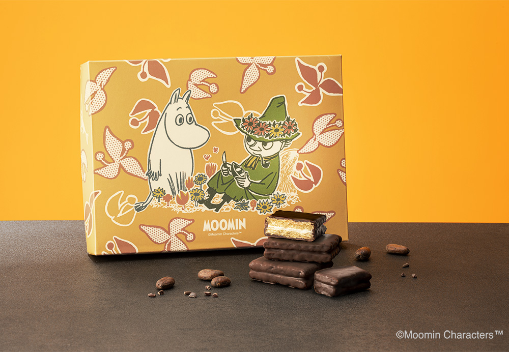 サックサクに焼き上げた特製シリアル生地には「ムーミン」とその仲間たちが描かれています。