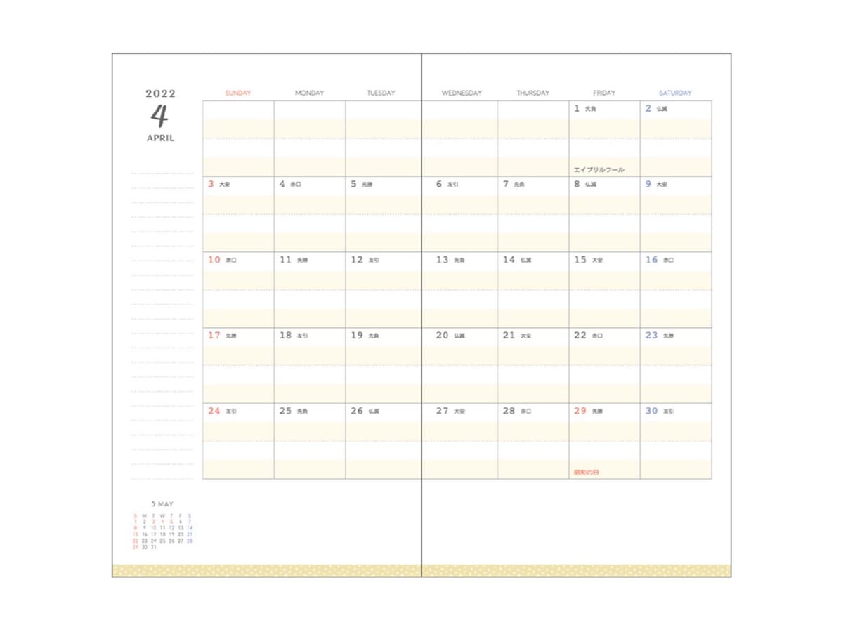 「ミニオン」2022手帳 B6マンスリー本文
