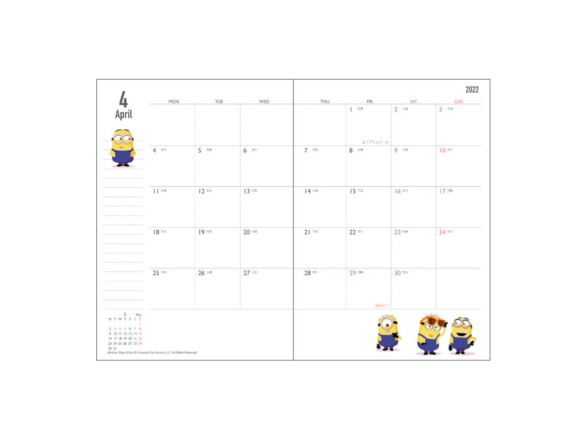 2022年も「ミニオン」たちと楽しくスケジュール管理ができそう!