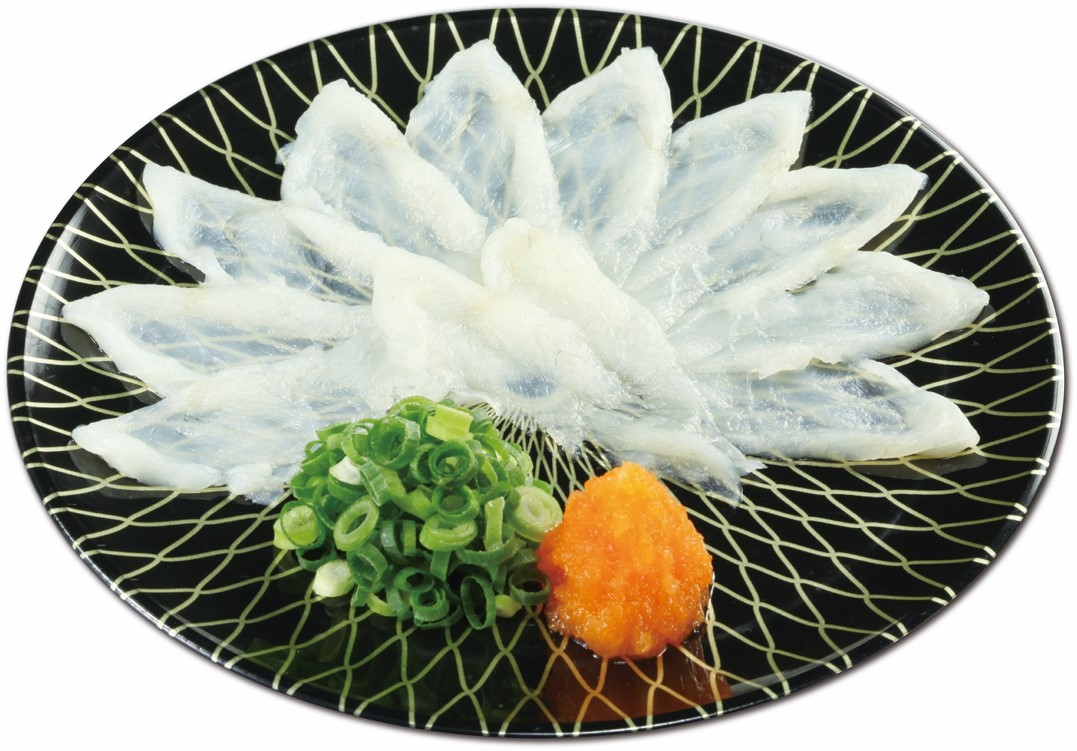 冬に定番のふぐの刺身を、もみじおろしとネギでいただけます。