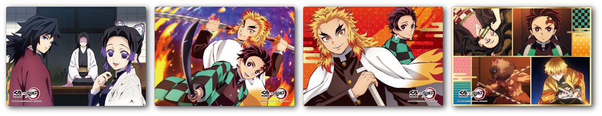 「竈門炭治郎」デザイン、「竈門禰豆子」デザイン、「我妻善逸&嘴平伊之助」デザイン、柱デザインなど、アニメの名場面アートを使用した見逃せないデザインになっています。