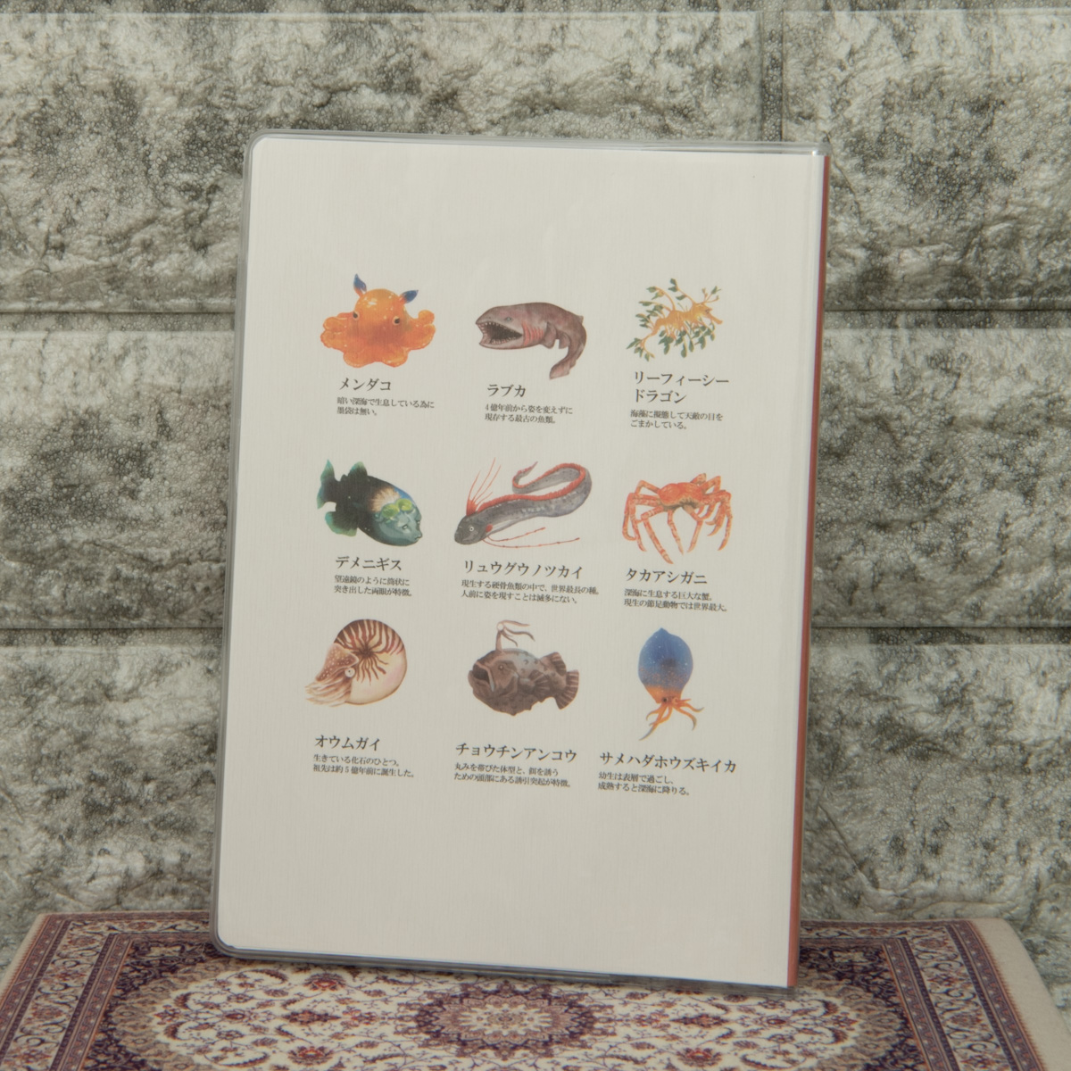 シーラカンスにリュウグウノツカイ、ダイオウイカといった「深海魚」たちのイラストはインパクト抜群。
