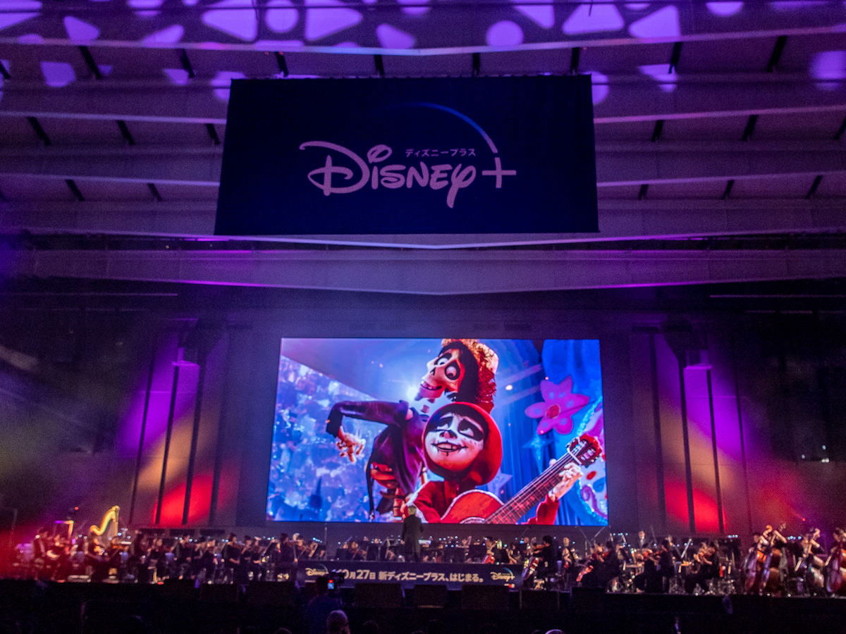 オープニングは、東京フィルハーモニー交響楽団の生演奏による「ディズニー」「ピクサー」「マーベル」「スター・ウォーズ」「スター」の6つのブランドから、代表作の名曲メドレー。
