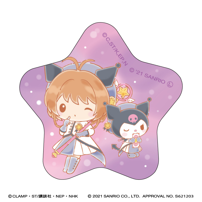 「クロミ」と「木之本 桜」のパープルカラーの星型缶バッジ。
