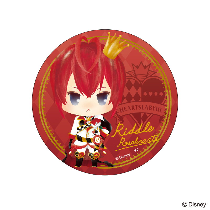 「ハーツラビュル寮」の寮長「リドル・ローズハート」デザインの缶バッジ。