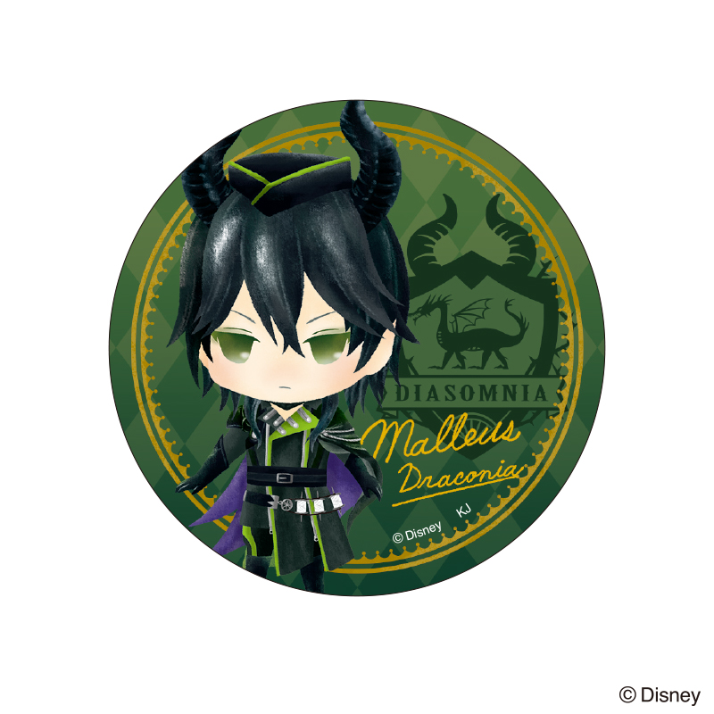 「ディアソムニア寮」の寮長「マレウス・ドラコニア」デザインの缶バッジ。