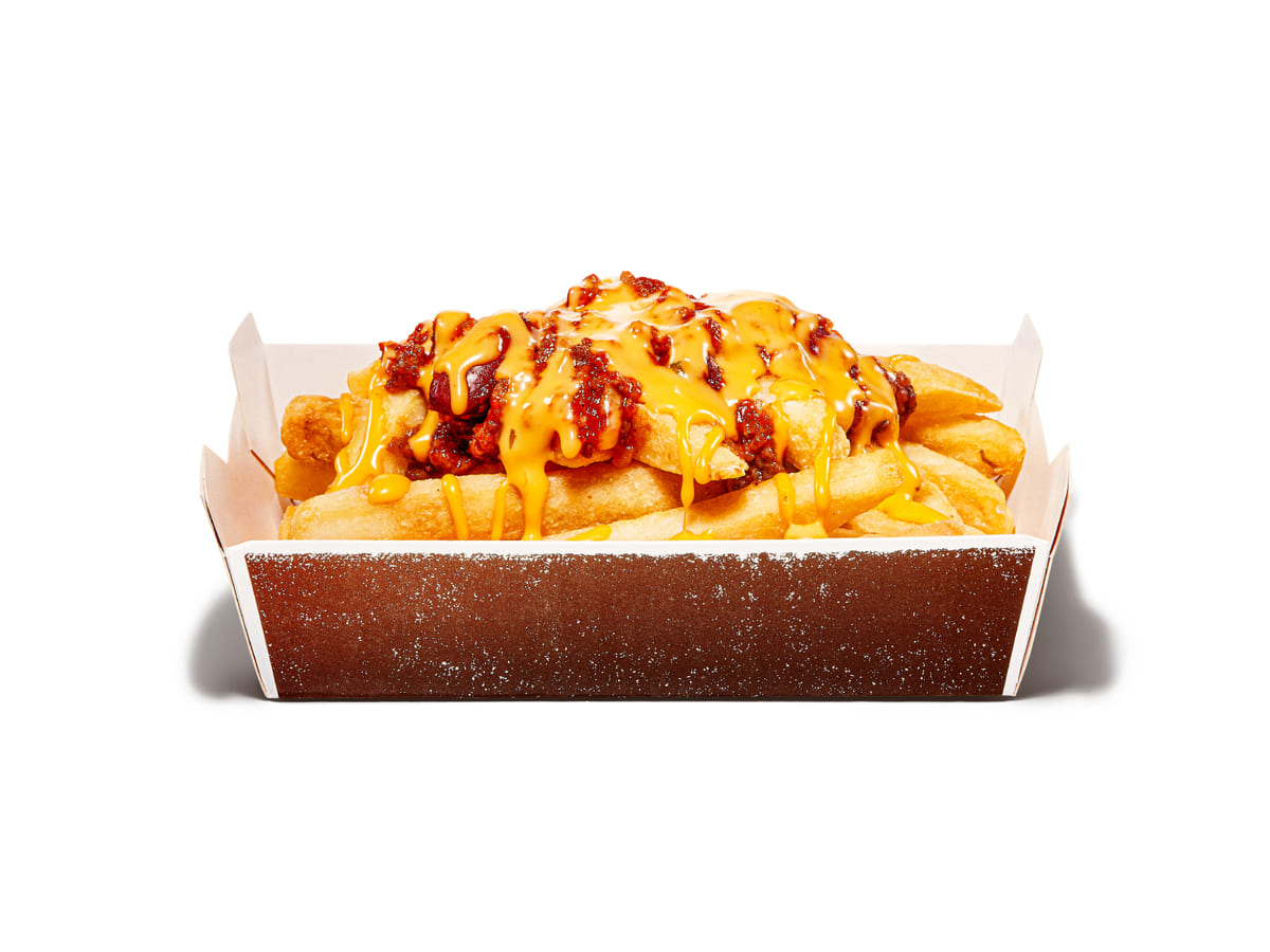 フレンチフライに11種類のスパイス・ゴロゴロ食感のビーフ100%ひき肉を使用した本格チリビーンズソースと、新しくなってコクが増したチーズソースが絡み合う「チリチーズフライ」