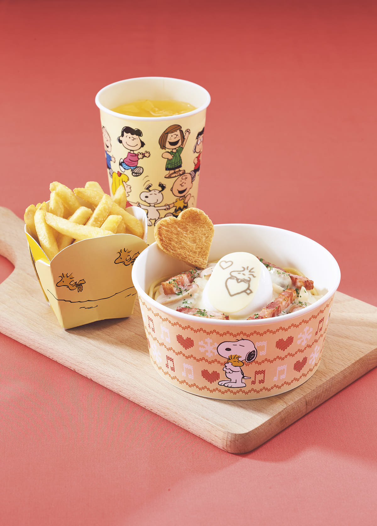 「スヌーピー」のかわいいカップに入った、濃厚クリームスープパスタのセット。