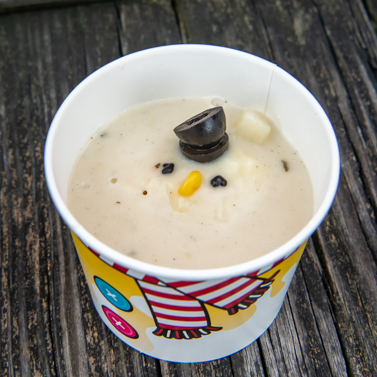 あたたかいスープのなかで、スノーマンがとろ~り溶けてしまいそうな様子をイメージしたリゾット。
