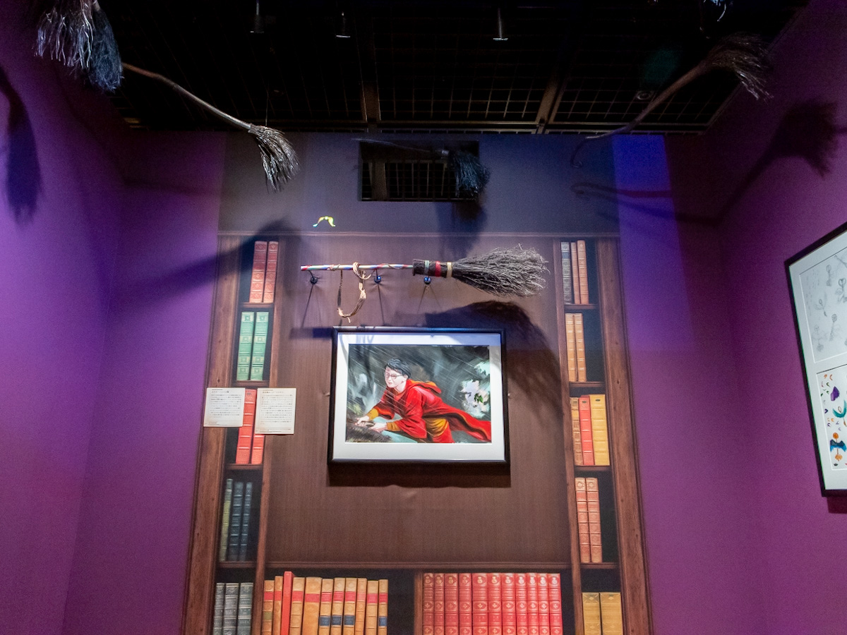 「金のスニッチ」が飛び回るほうきの展示や、