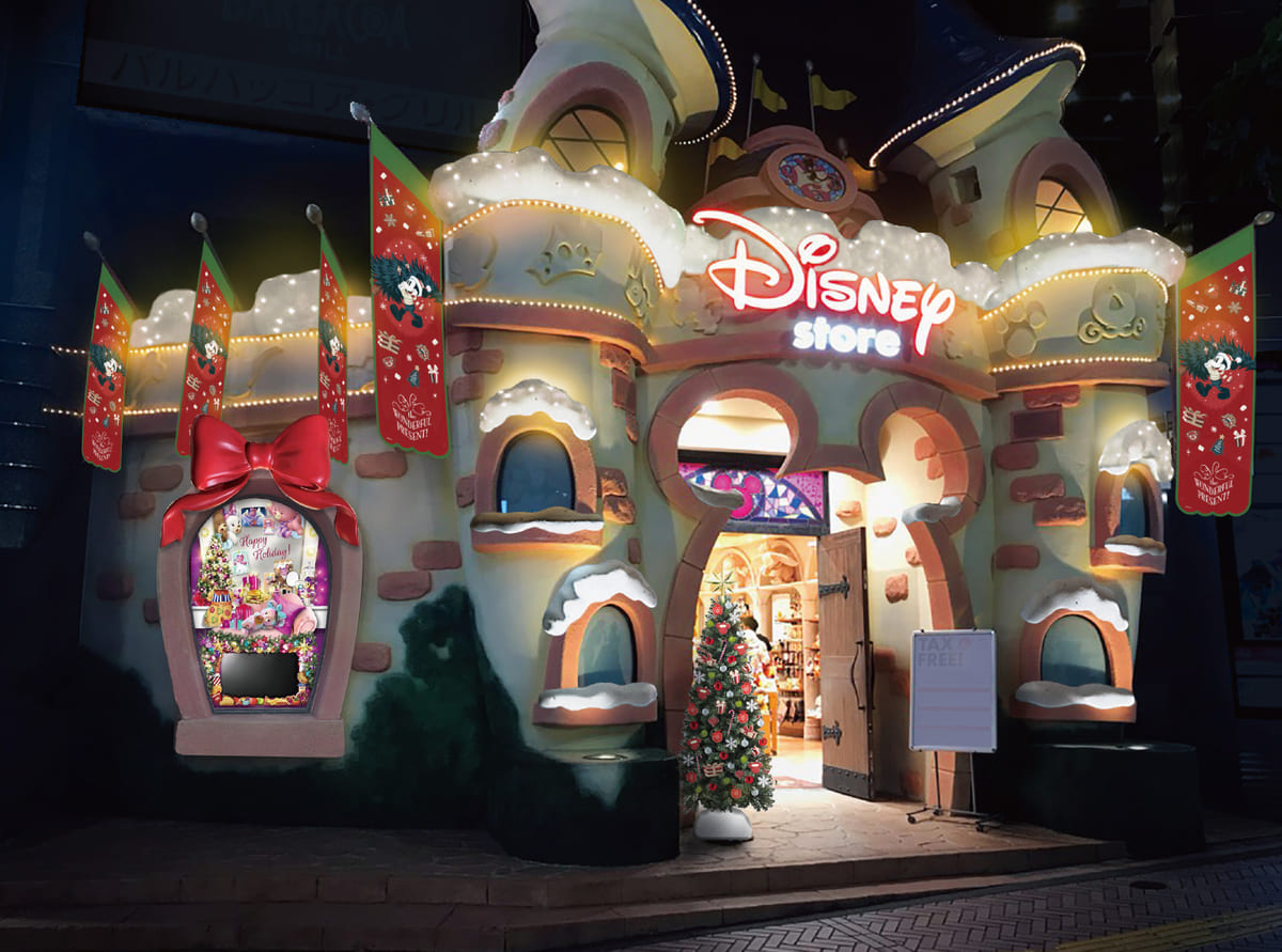 ディズニーストア渋谷公園通り店では、クリスマスをイメージした特別な外観装飾を期間限定で実施されます。