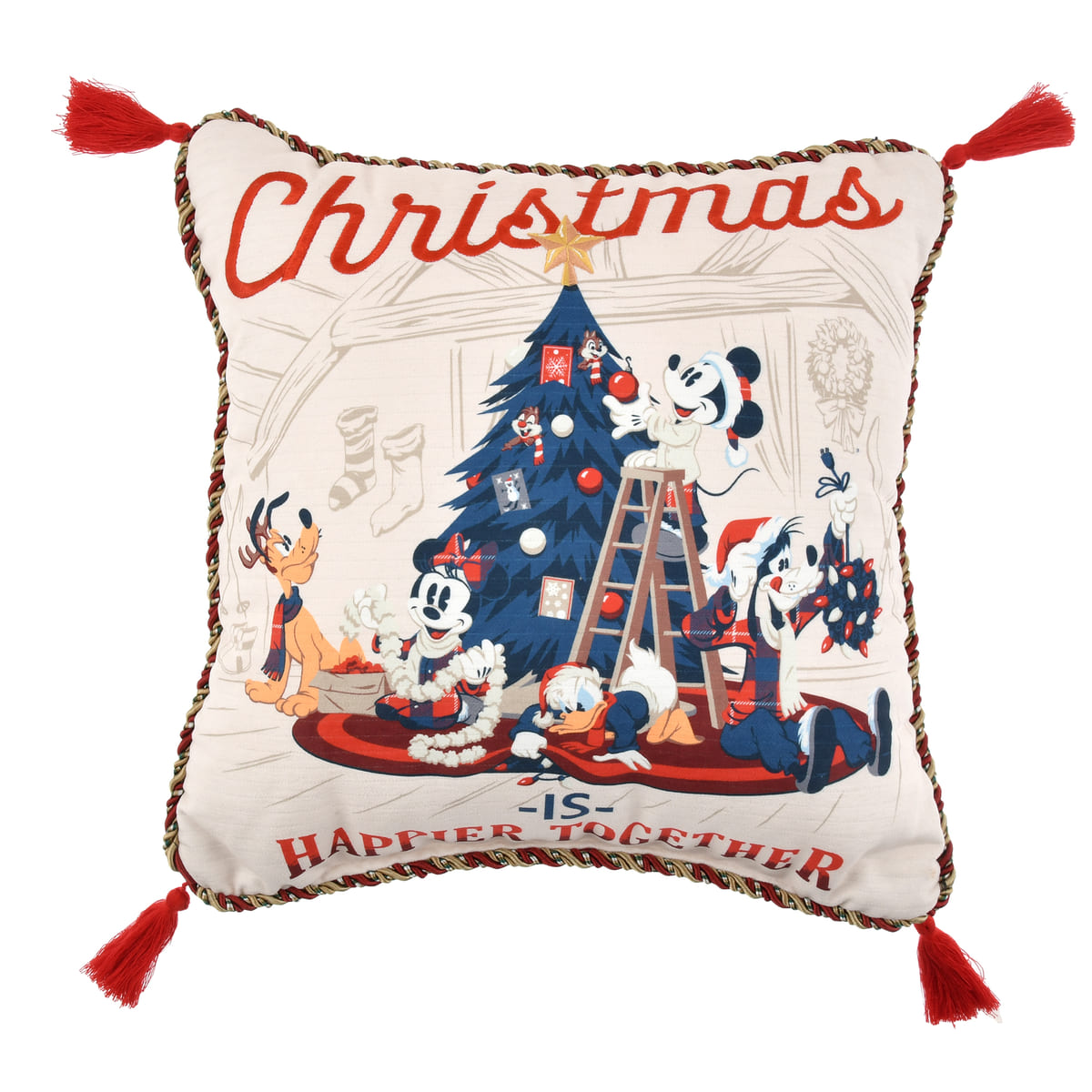 表と裏で異なる絵柄が楽しめる「ミッキー&フレンズ」のクリスマスデザインクッション。