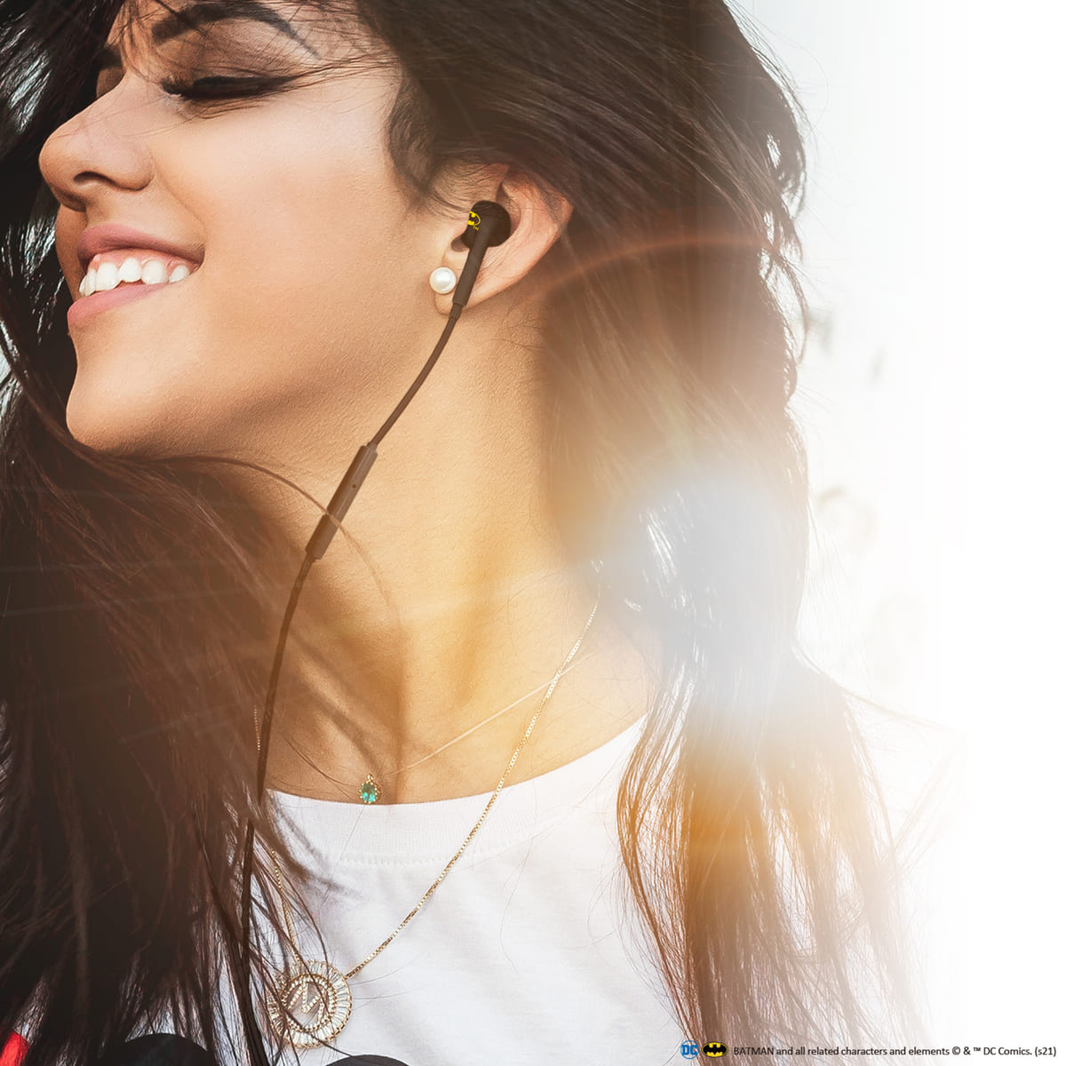 長時間の使用も最適で、イヤホン部分にあしらわれた『バットマン』のロゴがクールなデザイン。