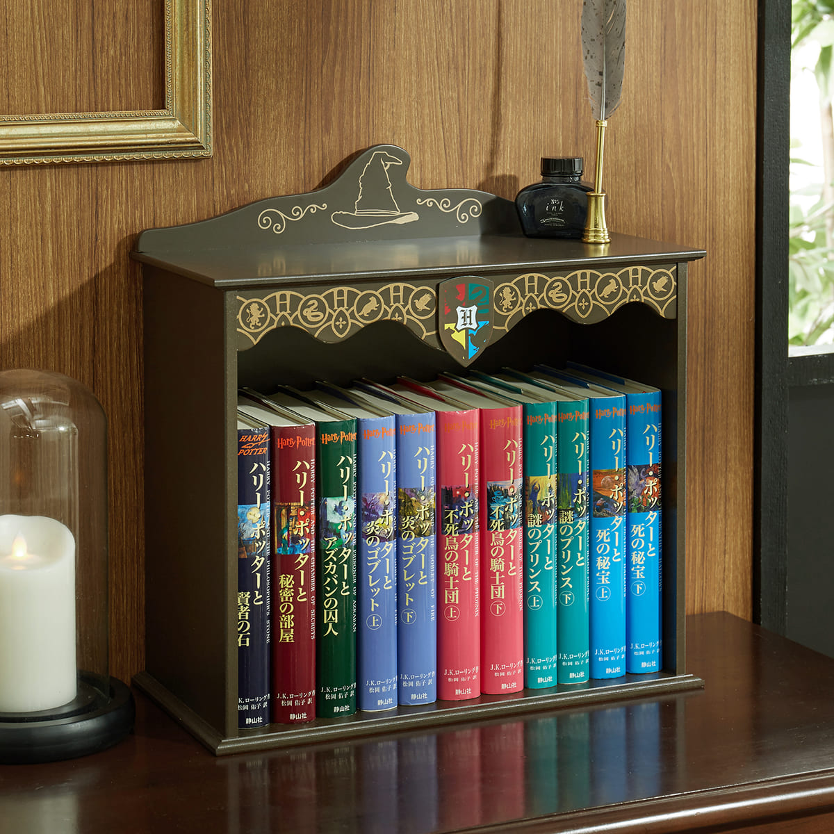『ハリー・ポッター』シリーズ全11冊がぴったり入るサイズの、卓上本棚。