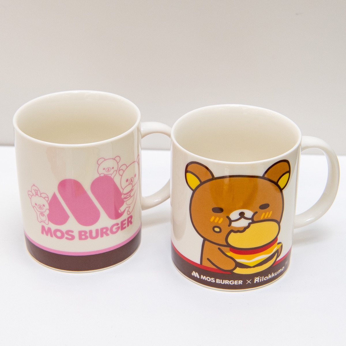 「リラックマ」たちがモスバーガーのフードを頬張る、愛らしいアートが描かれた2種のマグカップが展開されます☆