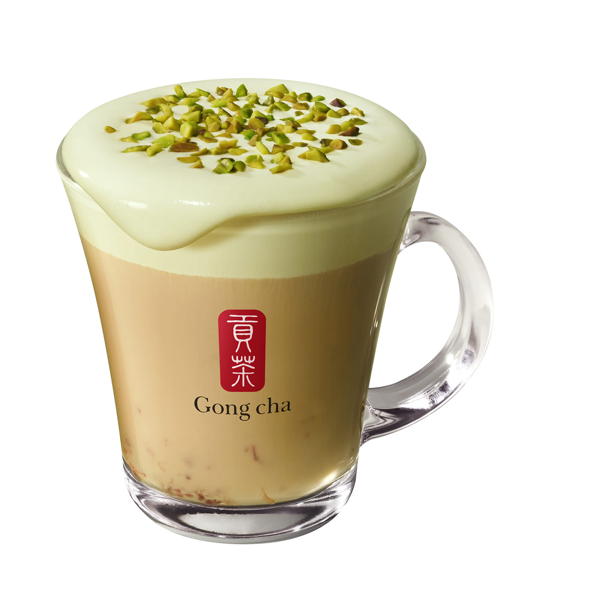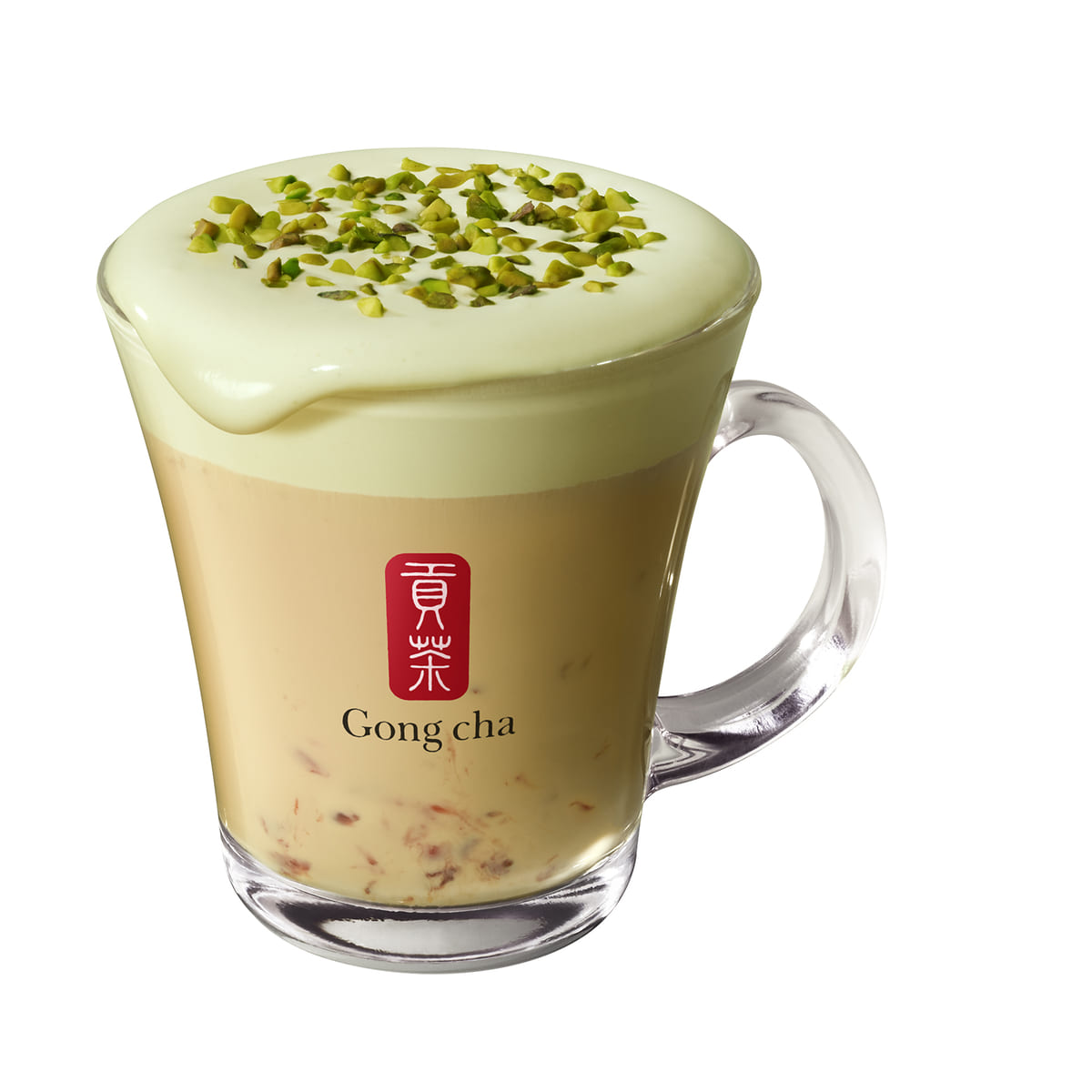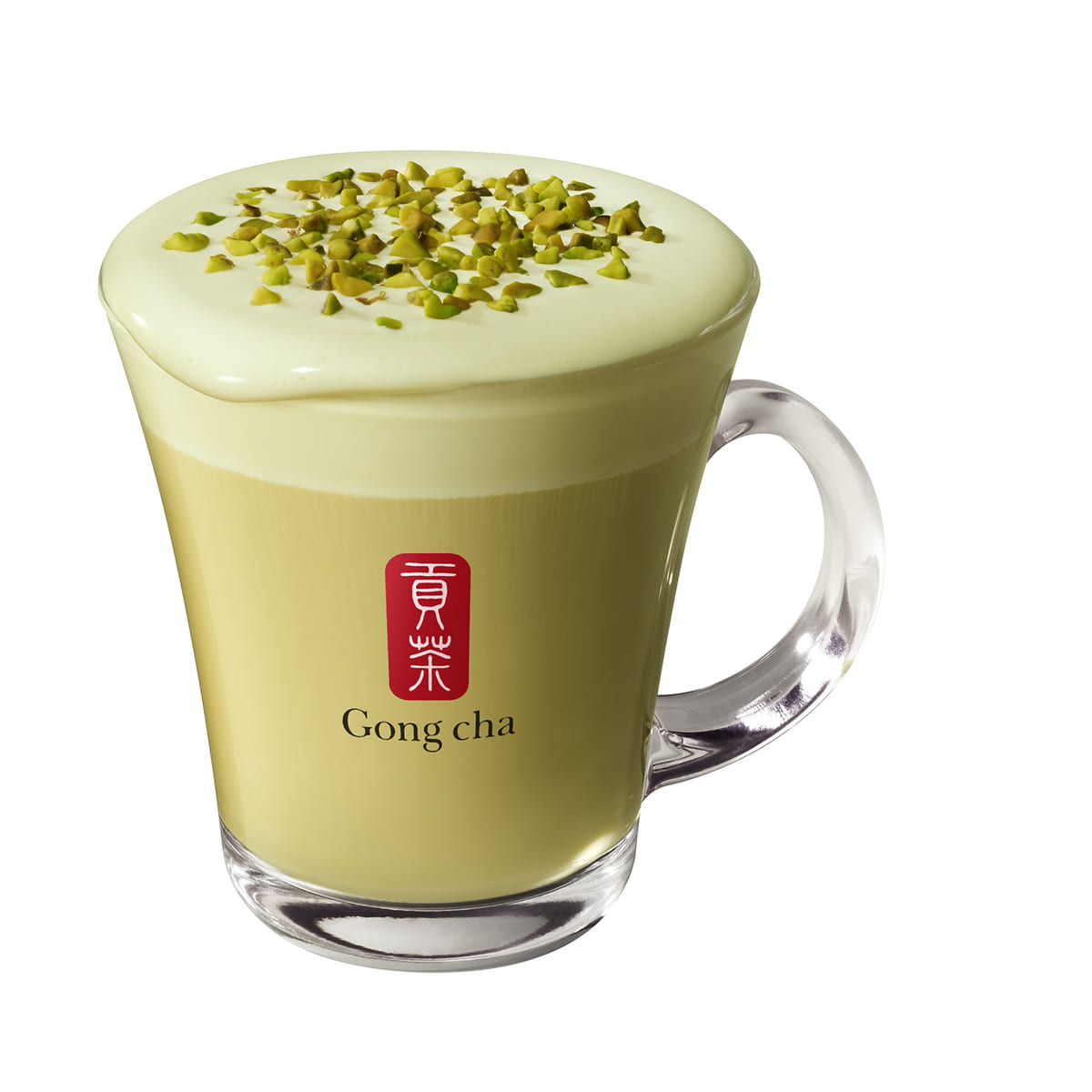 やさしい緑色のピスタチオ ミルクフォームは、全てのお茶のトッピングとしてお楽しみいただけます。