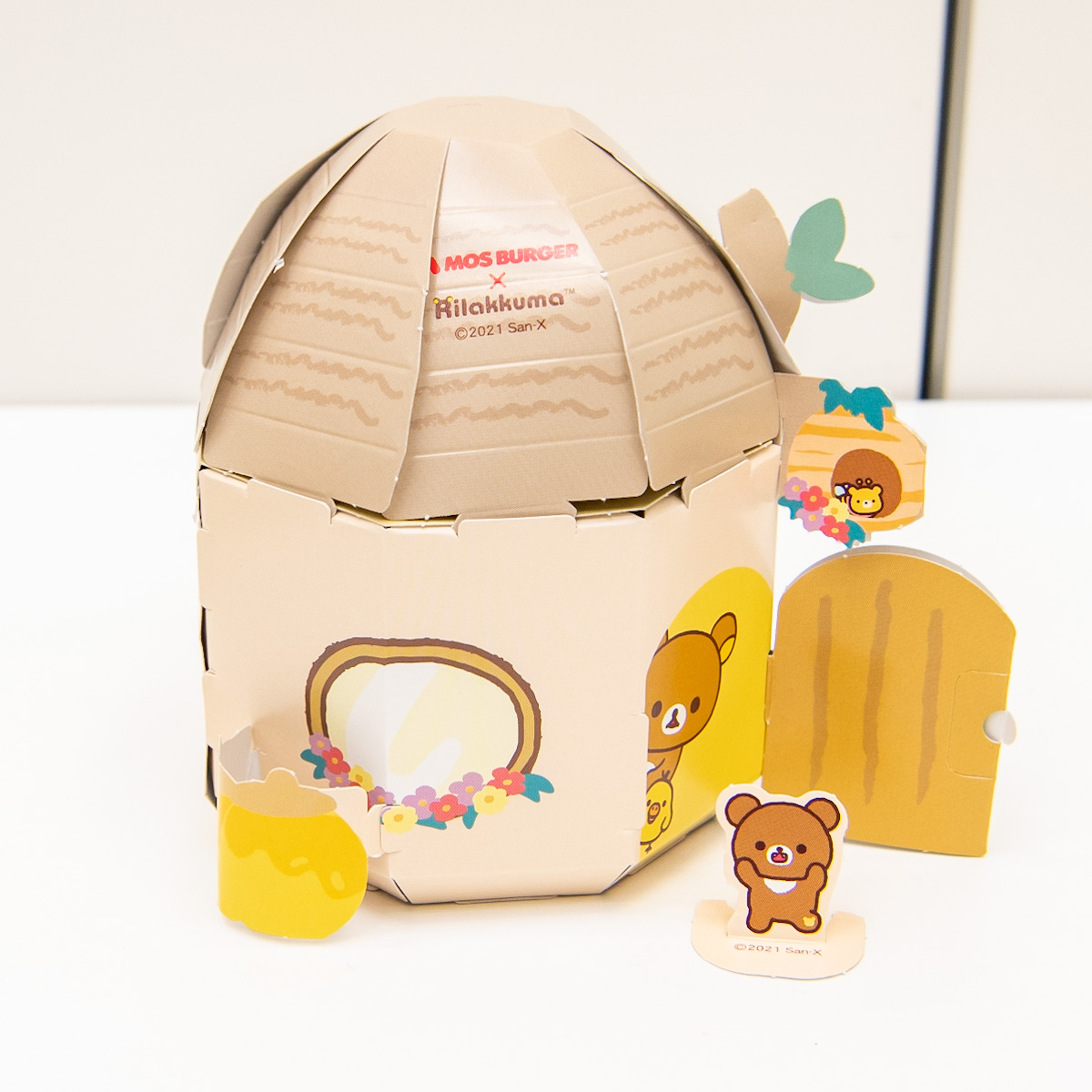 おもちゃだけでなく、ハンバーガーの包装紙やトレーマットなどさまざまなところに「リラックマ」が登場します。