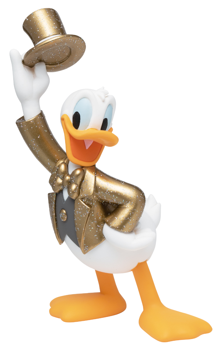 腰に手を添えてポーズをとる、ゴールドのジャケットがお似合いな「ドナルドダック」