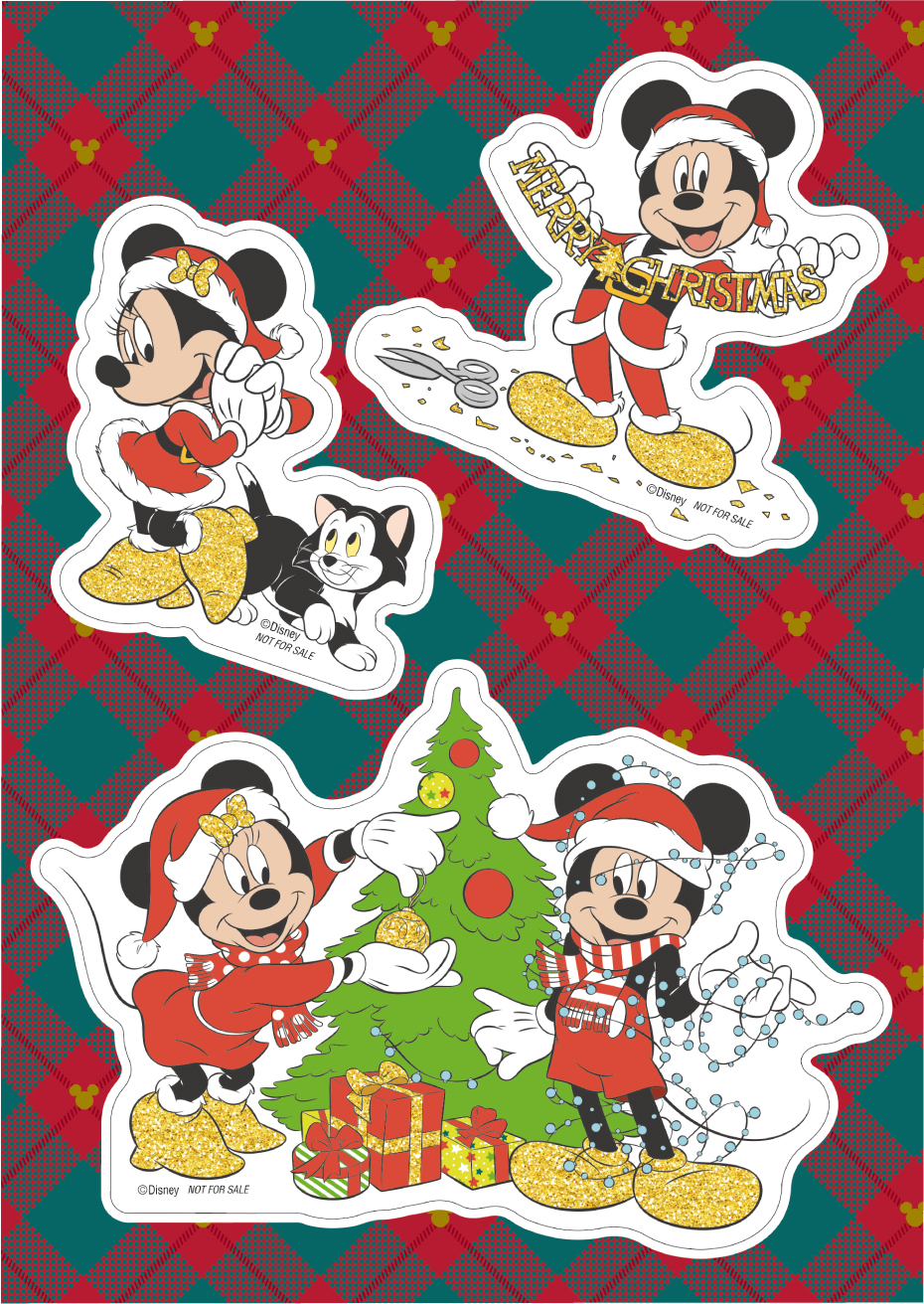 「ミッキーマウス」と「ミニーマウス」が仲良くクリスマスの準備をする姿や