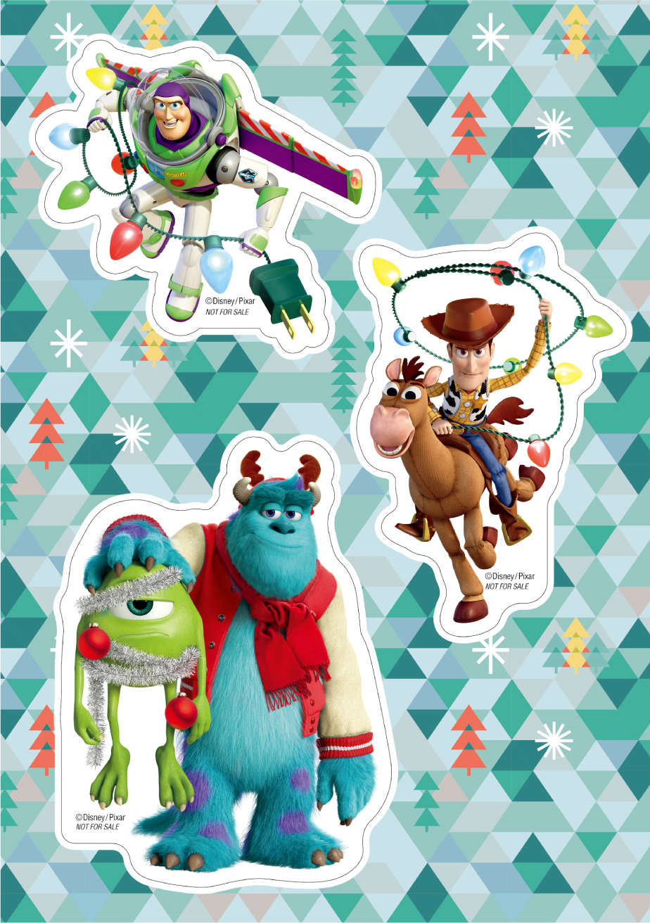ピクサーキャラクターたちの全5柄から、1セットで2枚プレゼントされます。