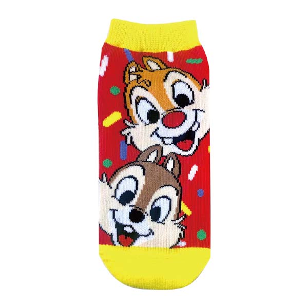 まるでチョコスプレーをトッピングしたような赤いパターンと「チップ」と「デール」のスマイルを組み合わせた賑やかなデザインです。