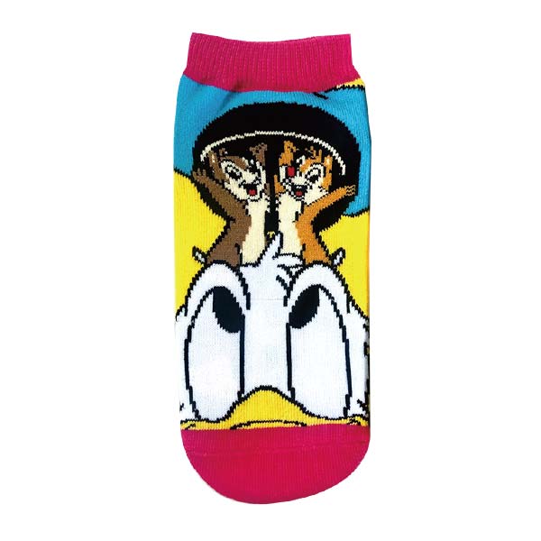 「ドナルドダック」のフェイスを大胆にデザインしたピンクのアンクルソックス。