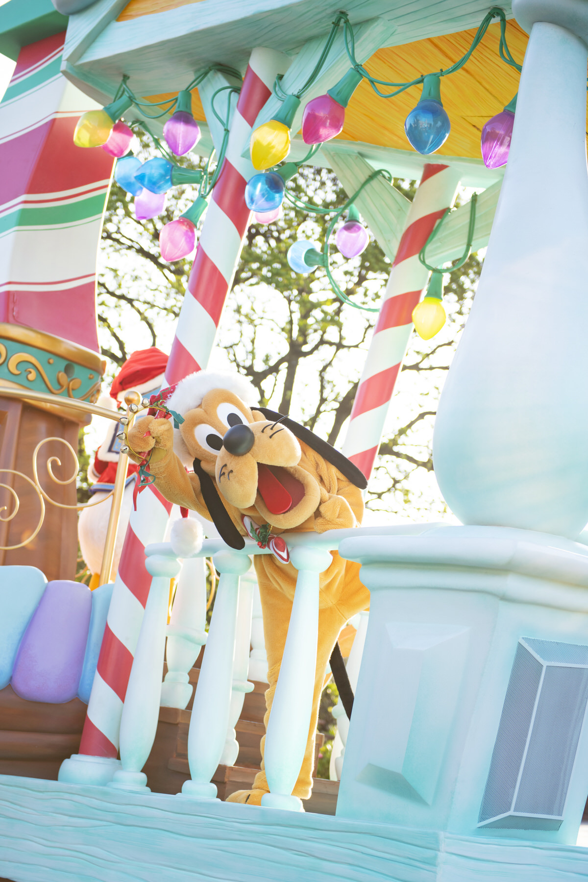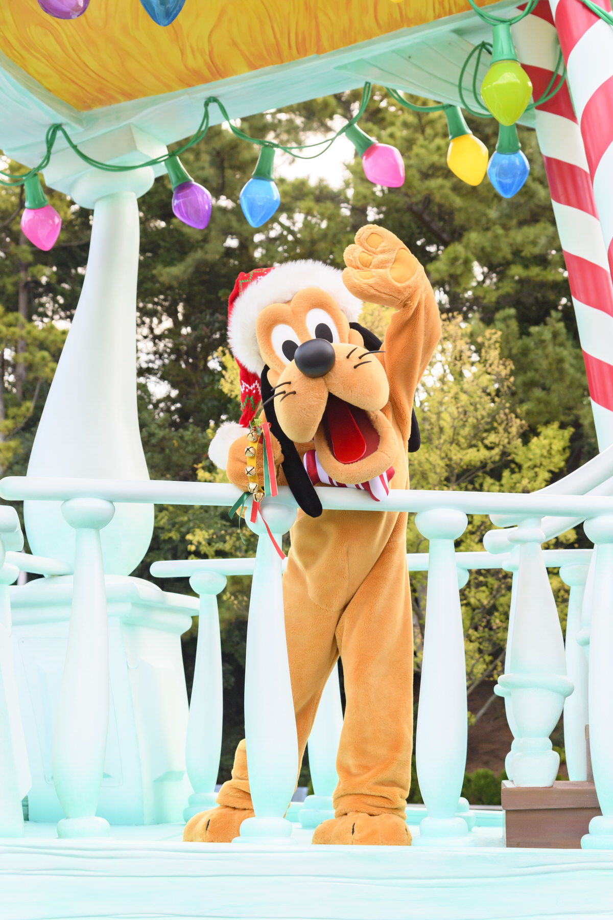 「ディズニー・クリスマス・ストーリーズ」では徒歩で登場していた「プルート」も「ミッキーマウス」たちと一緒にフロートに乗って登場☆