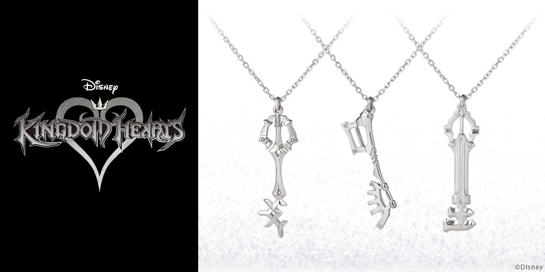 今回紹介するのは『キングダム ハーツ』に登場する「キーブレード」のうち、「アクア」が扱う「レインフォール」、「ヴェントゥス」が扱う「フレッシュブリーズ」、「テラ」が扱う「アースシェイカー」がそれぞれデザインされた「ネックレス」