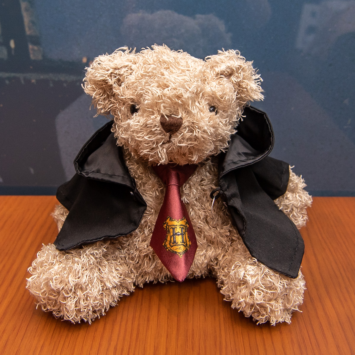 エンジ色のネクタイには、ホグワーツの紋章がプリントされている、特別な「ベアフル」です。