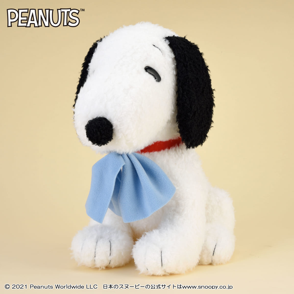 ふわふわの生地が気持ち良い、「スヌーピー」のちょこんと座った姿のぬいぐるみ。