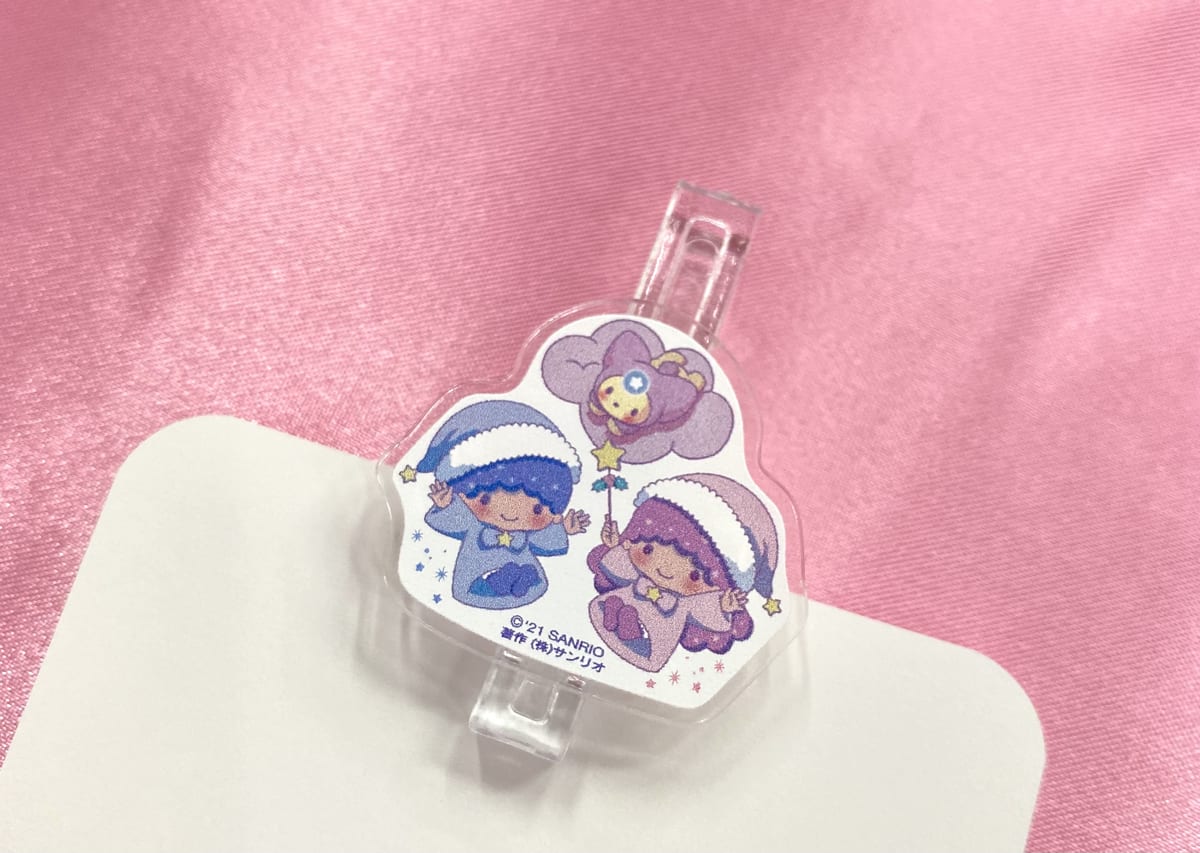 「キキ&ララ」が、バースデーパーティーの夢を見ながら幸せそうな笑顔を浮かべて眠っているデザインとなっていて、「キキ&ララ」のお友達で、スヤスヤランドの王子様「ネムリン」も登場しています。