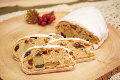 自家製マジパンと数種類のフルーツ・ナッツがゴロゴロ入ったシュトーレン。