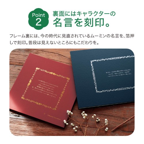 フレーム裏面には、現在もなお注目されている小説中の名言が箔押しで刻印されています。