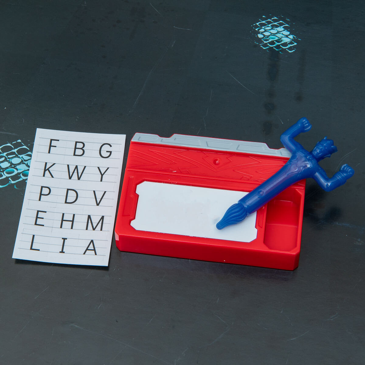 第二弾では、アルファベットの文字が書けるおもちゃや赤いレンズのウルトラアイを使って英語が学べるグッズが登場。