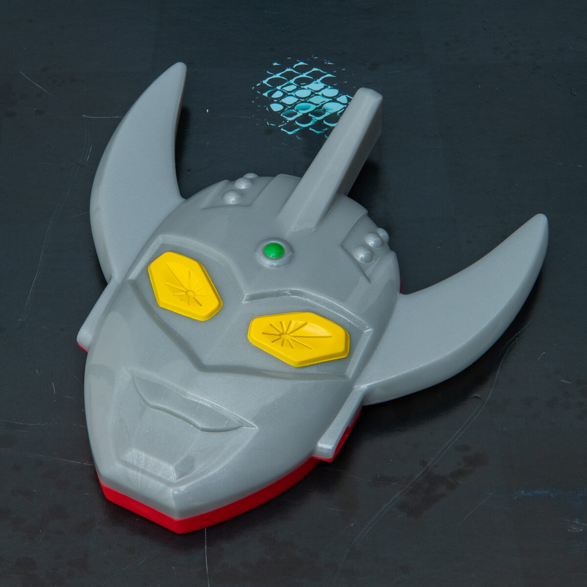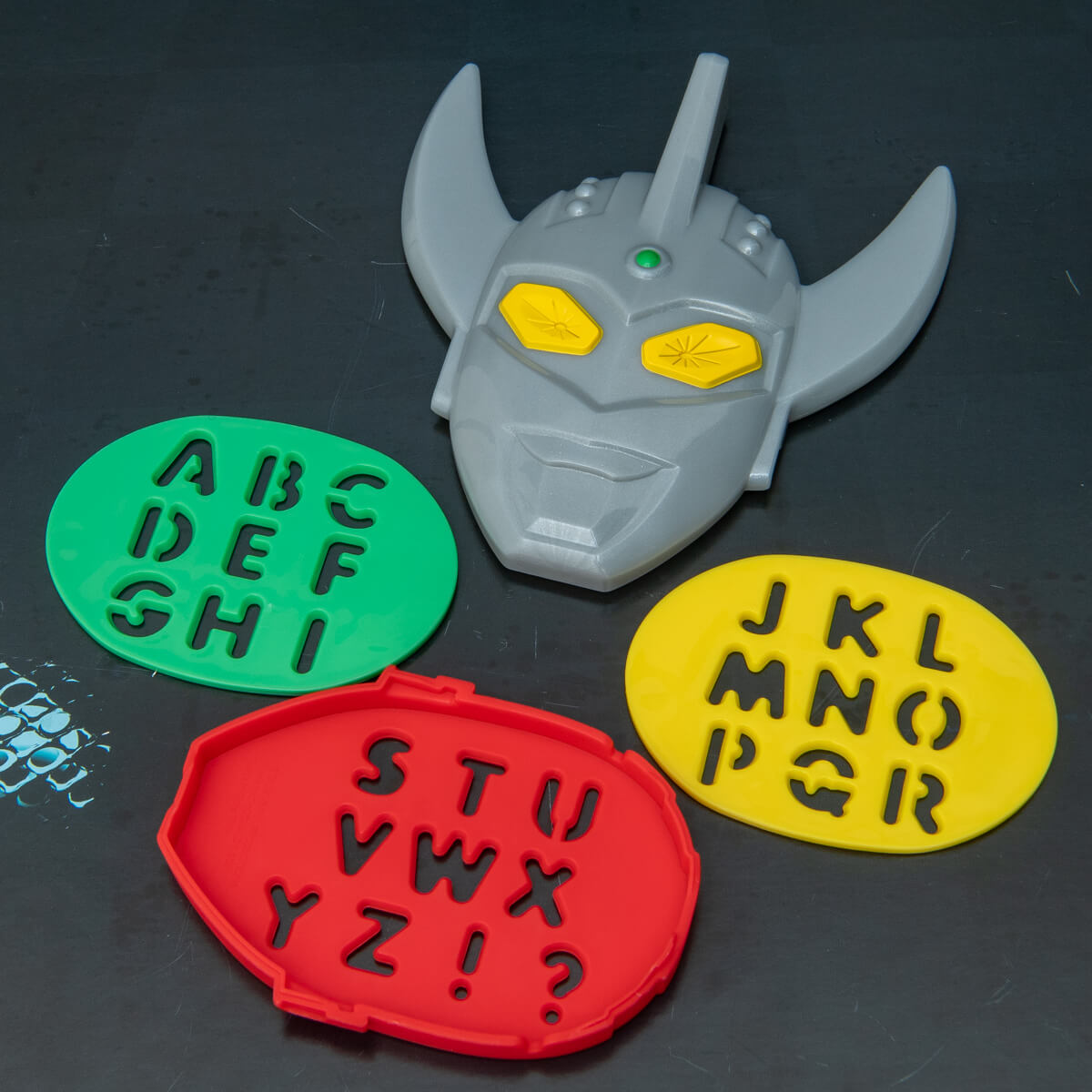 ステンシルは「ウルトラマンタロウ」のマスク型ケースにしまうことができます。