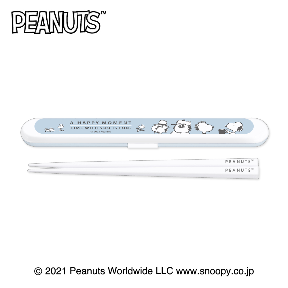 「スヌーピー」ときょうだい、「ウッドストック」たちが一列に並んだケースがかわいいはし箱セット。