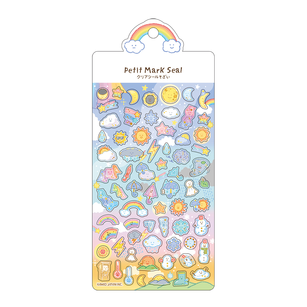 太陽や月、雨、雪などの天気アイコンをキャラクター化した「プチマークシール」