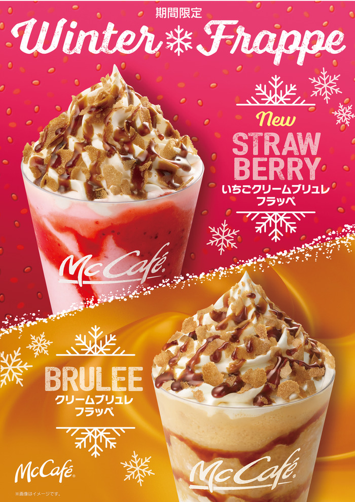 第1弾として、いちごを組み合わせた初登場の「いちごクリームブリュレフラッペ」と、毎年の冬の定番として好評の「クリームブリュレフラッペ」がラインナップされます☆