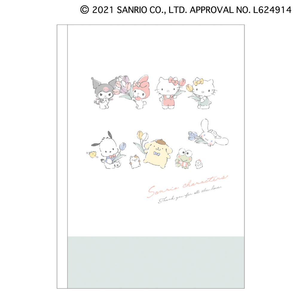 サンリオキャラクターズが大集合した表紙がかわいらしい、B5サイズのノート。