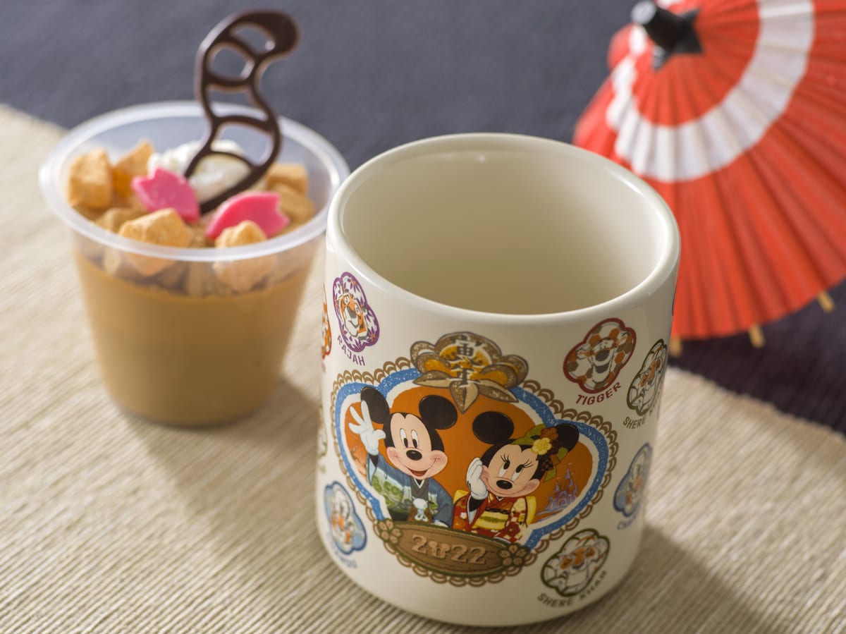 和服姿のミッキーマウスや干支にちなみ、トラのキャラクターが描かれた湯呑み形のスーベニアカップが付いたスウィーツが登場。