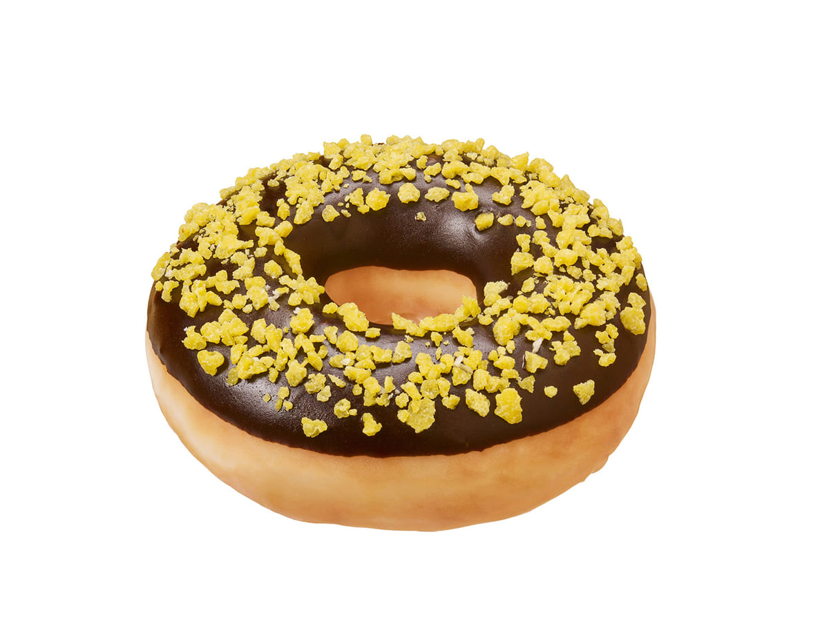『トラ チョコ クランブル』は、ほんのりバター風味が広がるクランチで、寅のカラーをイメージしたリングドーナツです。
