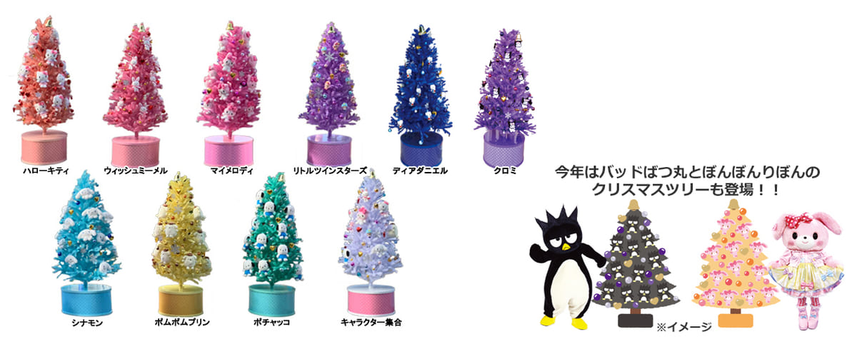 「ハローキティ」や「マイメロディ」「キキ&ララ」などのキャラクターをモチーフにしたクリスマスツリーが登場。