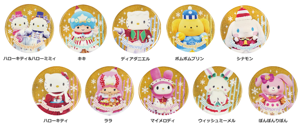 クリスマスシーズン限定で登場する、ハーモニーランドオリジナルデザインのブラインド缶バッジは、全10種展開。