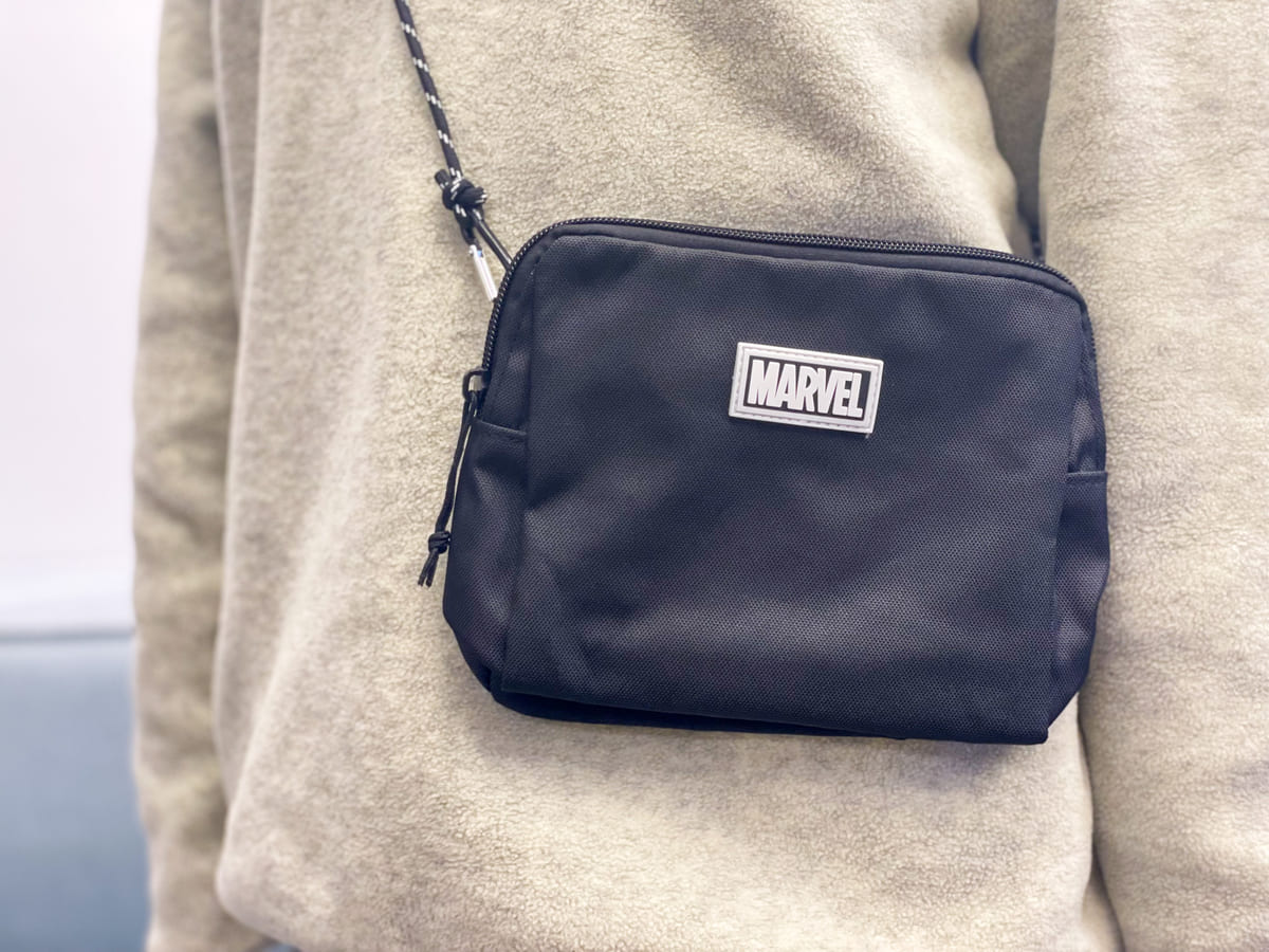 MARVELのワンポイントロゴがフロント面にレイアウトされた、D賞のサコッシュ。